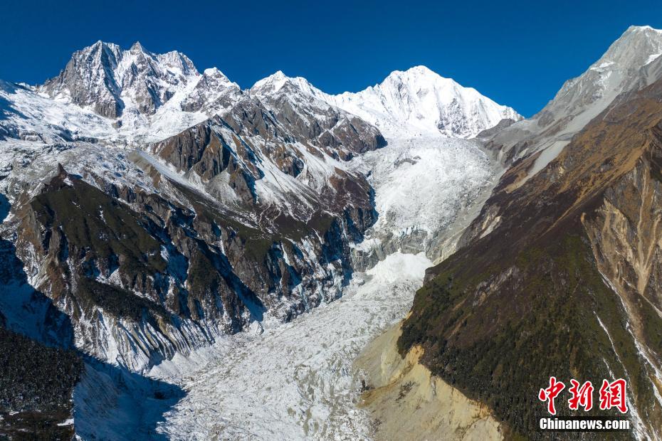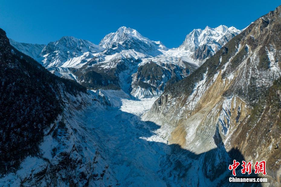 1月9日,中新網記者走進四川瀘定海螺溝景區核心區,航拍經曆了2022年“9.5”瀘定6.8級地震的貢嘎山海螺溝冰川冰瀑布,雄偉(wei) 壯觀依舊。