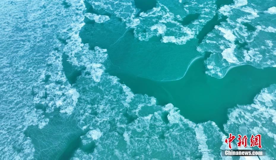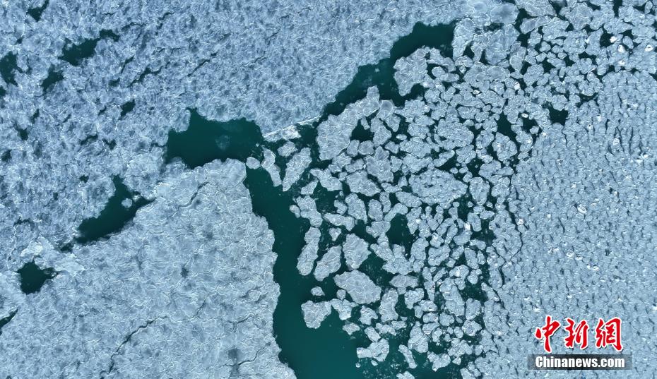 青海湖“冰封期”:巨大冰淩層層堆砌