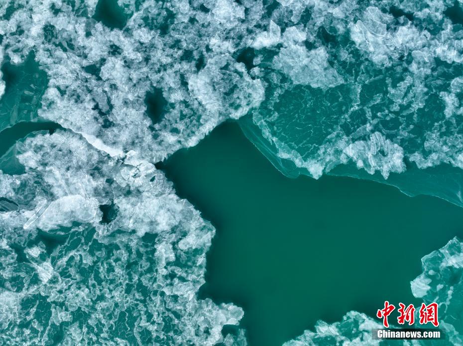 圖為(wei) 青海湖湖麵上漂浮的碎冰如同破碎的琉璃。安普榮 攝
