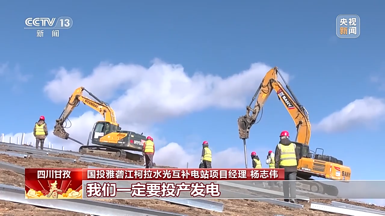 總台央視記者 古峻嶺:在海拔4600米的柯拉水電光伏互補電站,1000多名建設者正在加緊施工,他們(men) 要在春節期間把53萬(wan) 根光伏基礎樁全部施工完成。