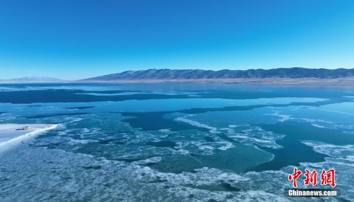 圖為(wei) 青海湖已由岸邊向湖心漸次封凍。史國成 攝