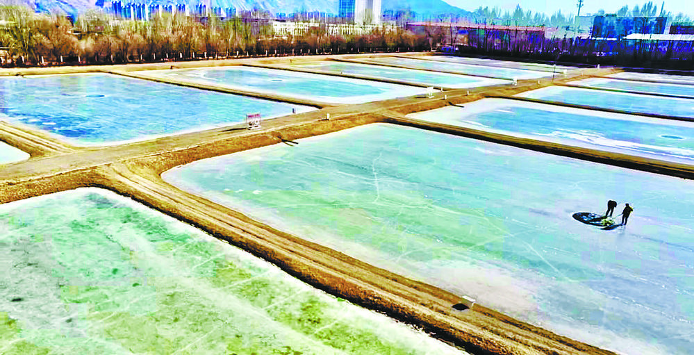 陽光透過冰麵照射在18口冰封的魚塘裏,為(wei) 過冬的小魚苗增氧增溫。這片池塘是裸鯉來到裸鯉救護中心的第一站,田文根是這裏的一名工作人員,主要負責室外原種場魚苗的培育和水質監測工作。據他介紹,魚塘的水質決(jue) 定著魚苗的健康狀況。在冬季,及時掃雪是一項非常重要的工作,因為(wei) 冰層下麵的裸鯉魚苗是靠浮遊植物通過光合作用產(chan) 生的氧氣生存,如果雪附著在冰層上,陽光無法透進,就容易造成缺氧。