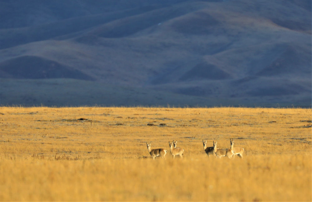 一群藏原羚在四川若爾蓋濕地國家級自然保護區裏徜徉(2020年10月24日攝)。新華社 王冀川 攝