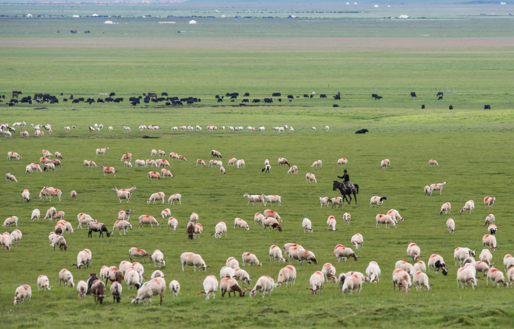 牛羊徜徉在四川若爾蓋濕地國家級自然保護區裏(2022年7月25日攝)。新華社 江宏景 攝