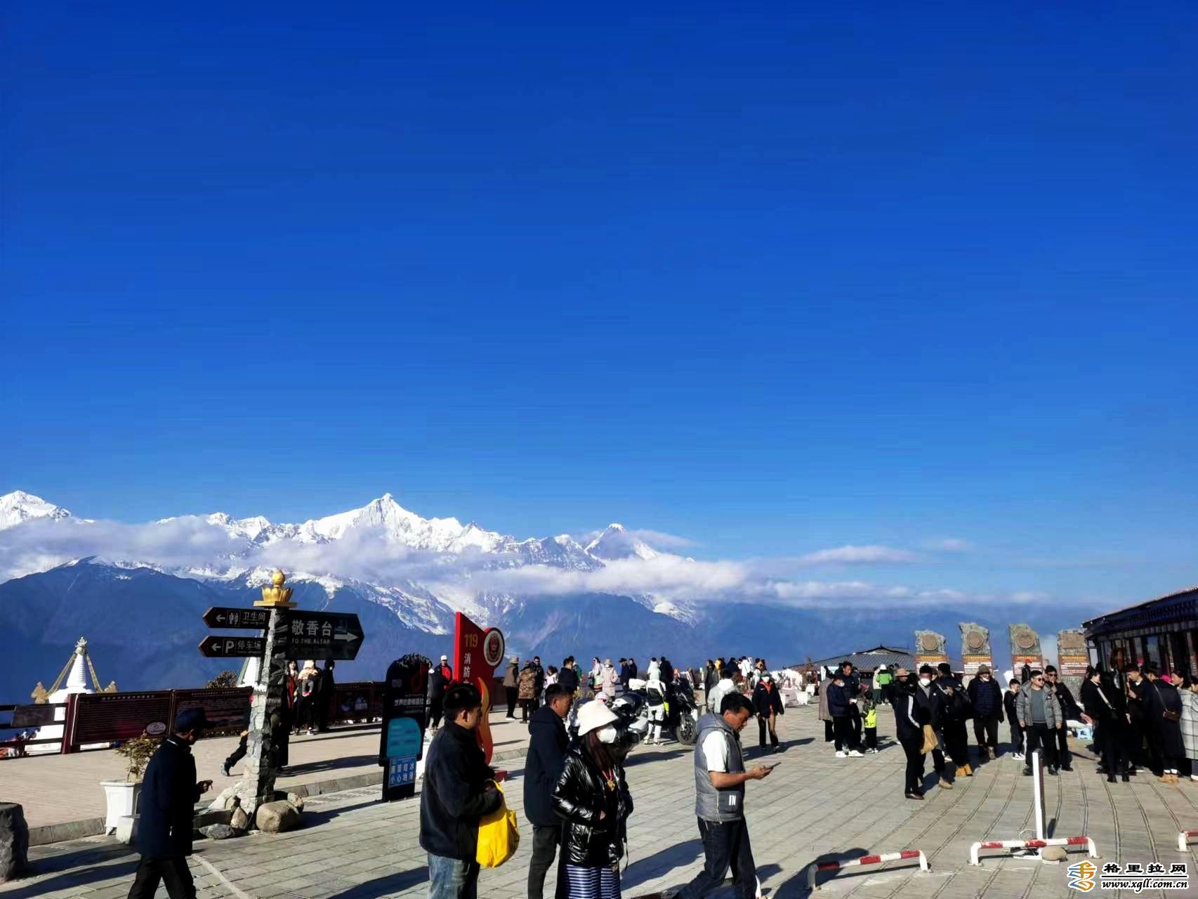 1月31日(大年初十),記者在飛來寺觀景台看到,這裏人流如織,遊客正興(xing) 致勃勃地“捕捉”梅裏雪山最美的姿態。