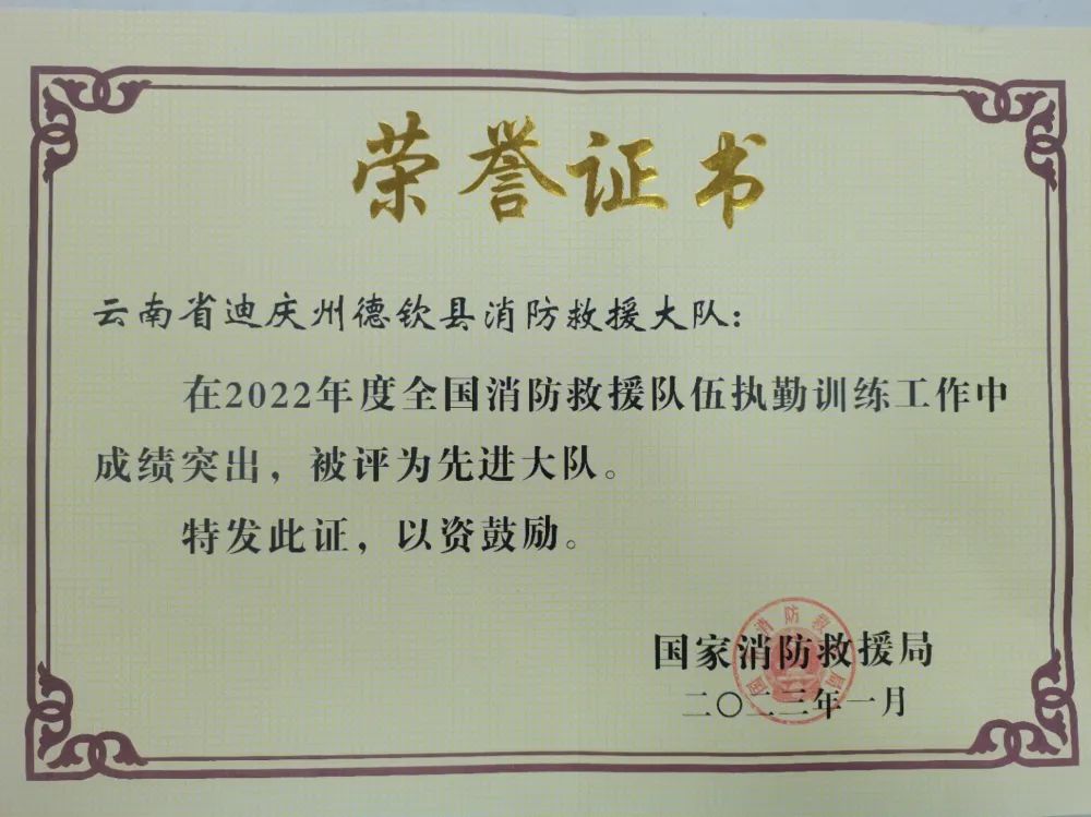 日前,國家消防救援局印發《關(guan) 於(yu) 表彰2022年度執勤訓練工作先進單位和個(ge) 人的通報》,德欽縣消防救援大隊被表彰為(wei) 2022年度全國消防救援隊伍執勤訓練工作先進大隊。