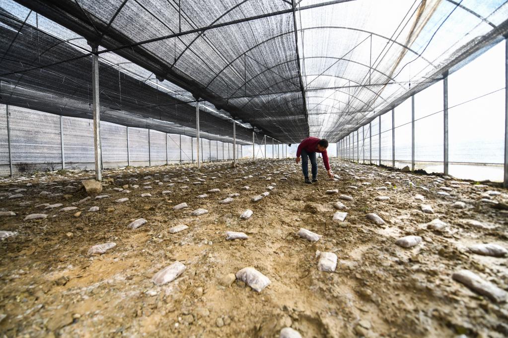 2月9日,克枯村村民餘(yu) 祥在大棚裏查看羊肚菌的長勢。新華社記者 王曦 攝