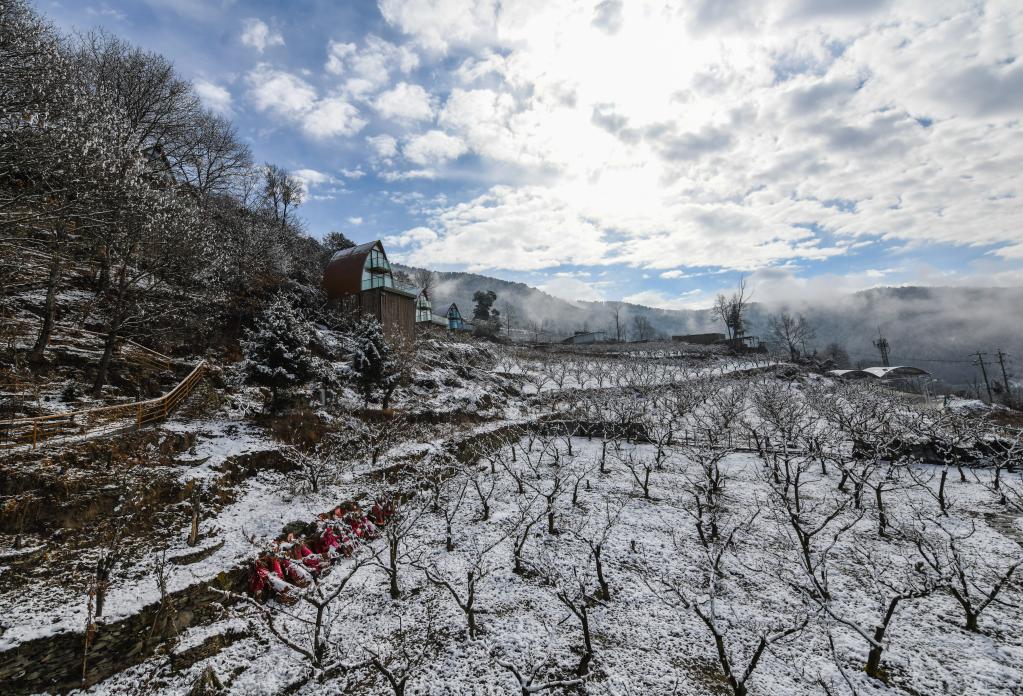 2月9日,一場大雪後,克枯村的李子樹枝幹上掛滿雪花。新華社記者 王曦 攝