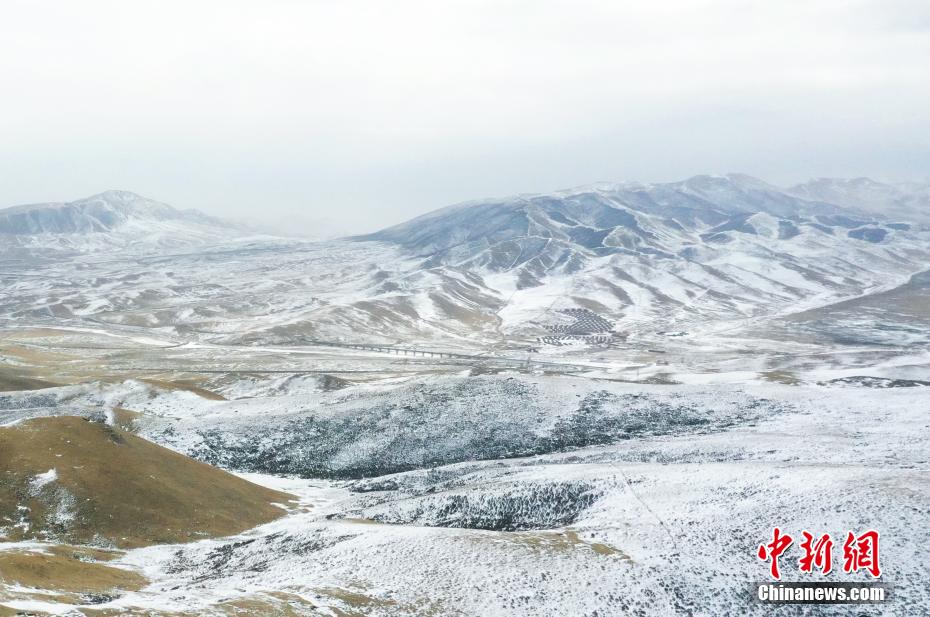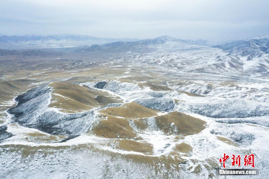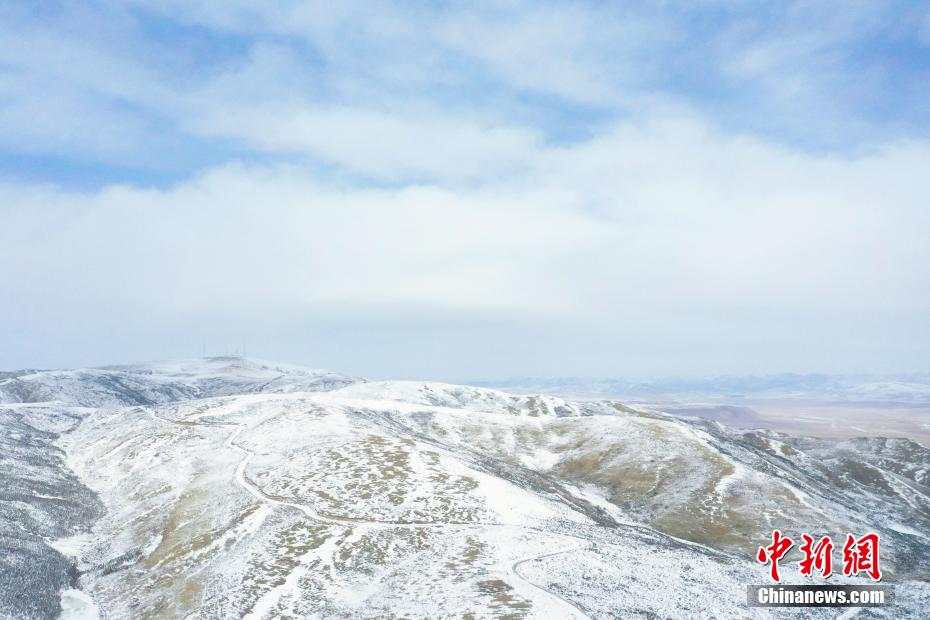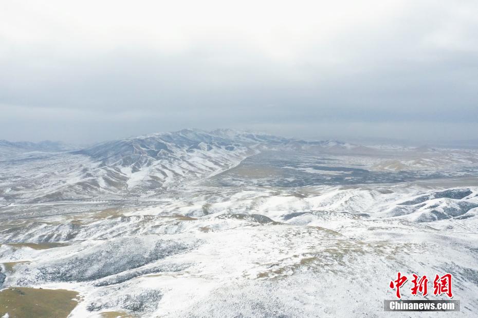 2月17日,航拍位於(yu) 青海省海北藏族自治州海晏縣,祁連山脈同寶山壯美雪景。一場春雪過後,同寶山連綿的山巒被白雪覆蓋,遠處的青海湖若隱若現,盡顯壯美。