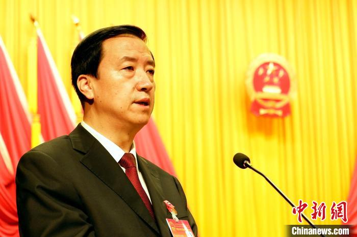 圖為(wei) 海北州代州長張勝源作工作報告。李雋 攝