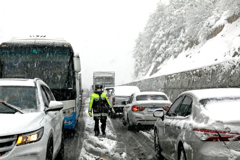 2月22日,大雪使白馬雪山路麵積雪結冰,導致上百輛汽車擁堵滯留,交警冒著嚴寒疏導交通。[詳細]
