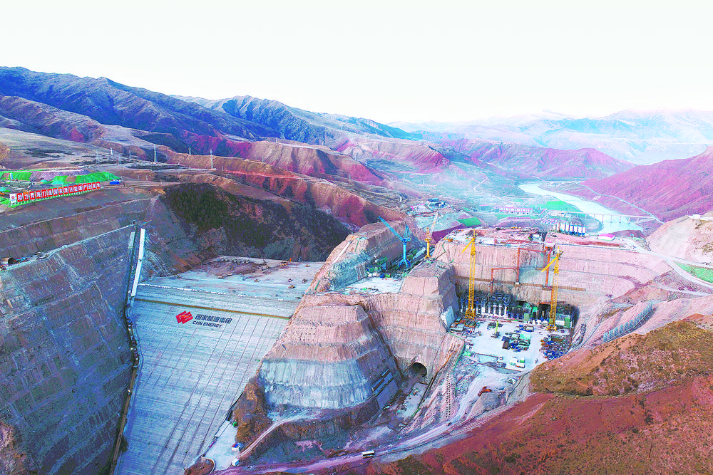 瑪爾擋水電站施工現場。國能青海公司供圖