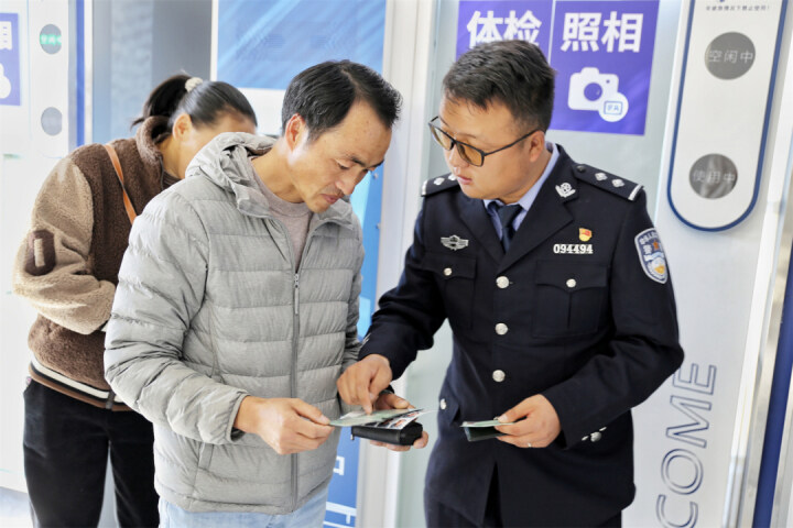 3月14日,記者在迪慶州交警支隊24小時自助服務區看到,不少群眾(zhong) 正在工作人員的指導下自助辦理駕駛證換證業(ye) 務。