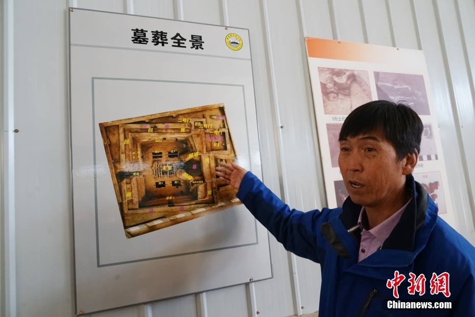 3月18日,青海省海西州都蘭(lan) 縣博物館館長張杲光介紹熱水墓群2018血渭一號墓。中新社記者 馬銘言 攝