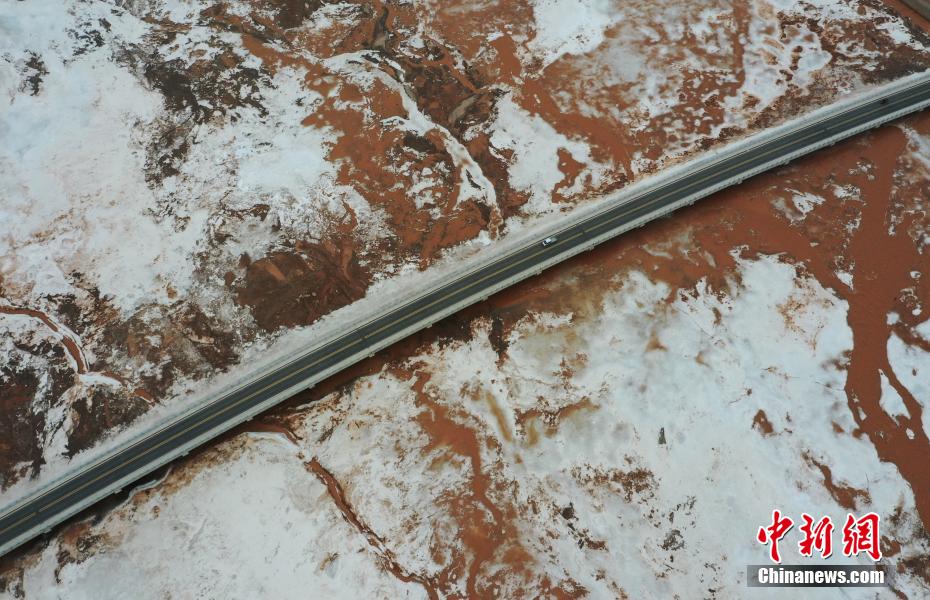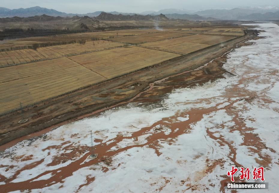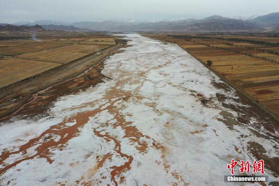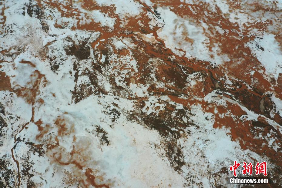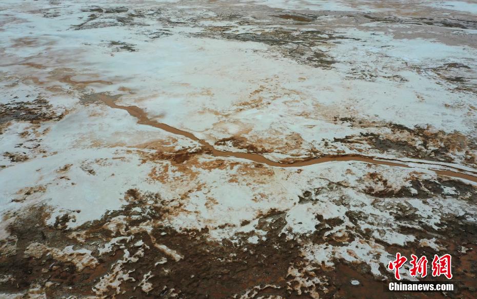 3月19月,航拍青海省海西蒙古族藏族自治州都蘭(lan) 縣香日德河。香日德河是柴達木盆地的第三條大河,因河底的石頭由紅色片麻岩組成,加之上遊地區下雨衝(chong) 刷紅色土壤而形成棕紅色河流的自然景觀,故稱“紅河穀”。河流夾帶礦物質,長年累月積累形成了幹涸淺紅色的河床。初春三月,乍暖還寒,紅色的河流與(yu) 白色的冰麵相互交錯,絢麗(li) 壯美。