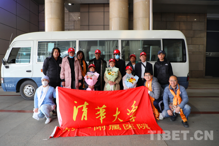 圖為(wei) 3月19日即將前往清華大學第一附屬醫院北京華信醫院的患兒(er) 、家屬及院方代表