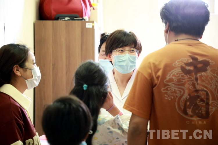 圖為(wei) 北醫三院心髒外科主任醫師、副主任張喆教授手術前到病房與(yu) 來自青海省果洛藏族自治州的先心病患兒(er) 溝通 攝影:劉莉