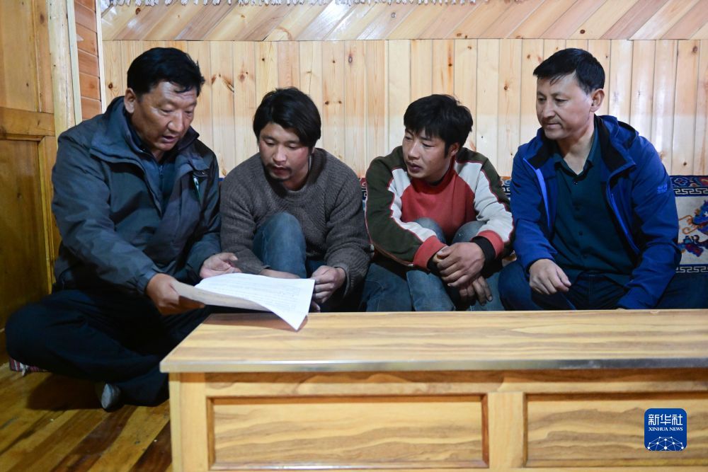 3月24日,在青海省黃南藏族自治州澤庫縣麥秀鎮龍藏村,麥秀林場護林員(左一)在牧民家中宣傳(chuan) 防火知識。新華社記者 張龍 攝