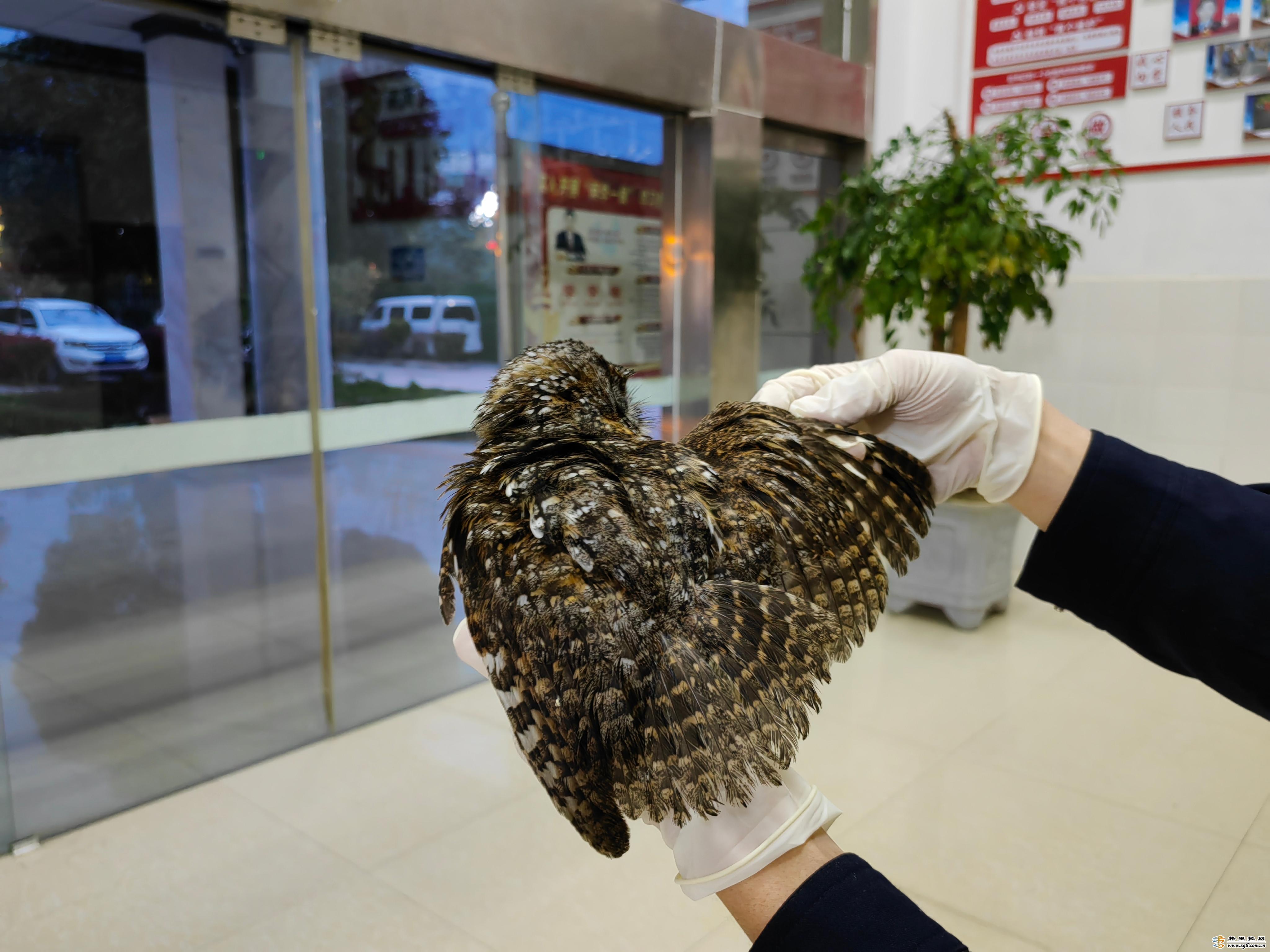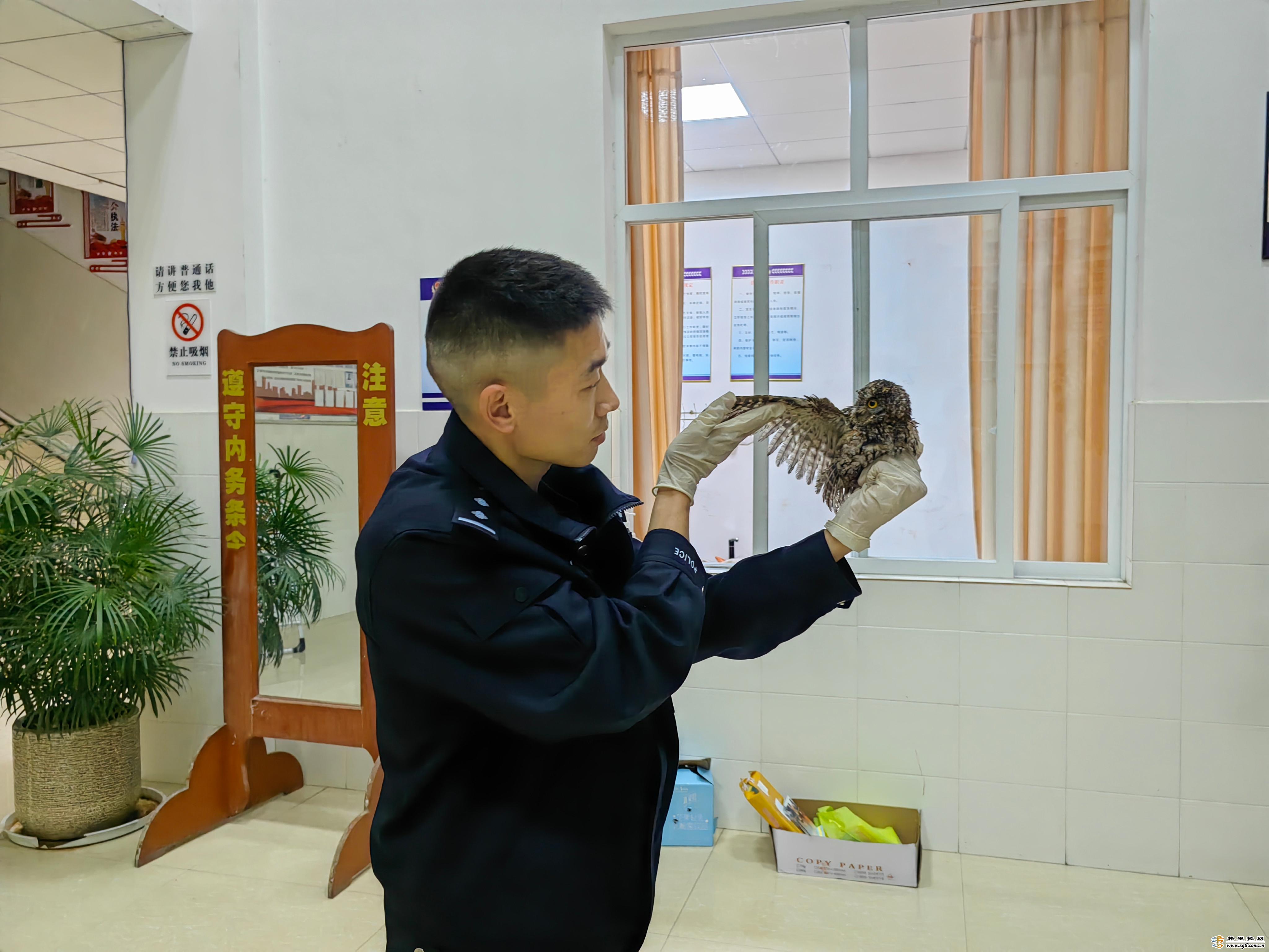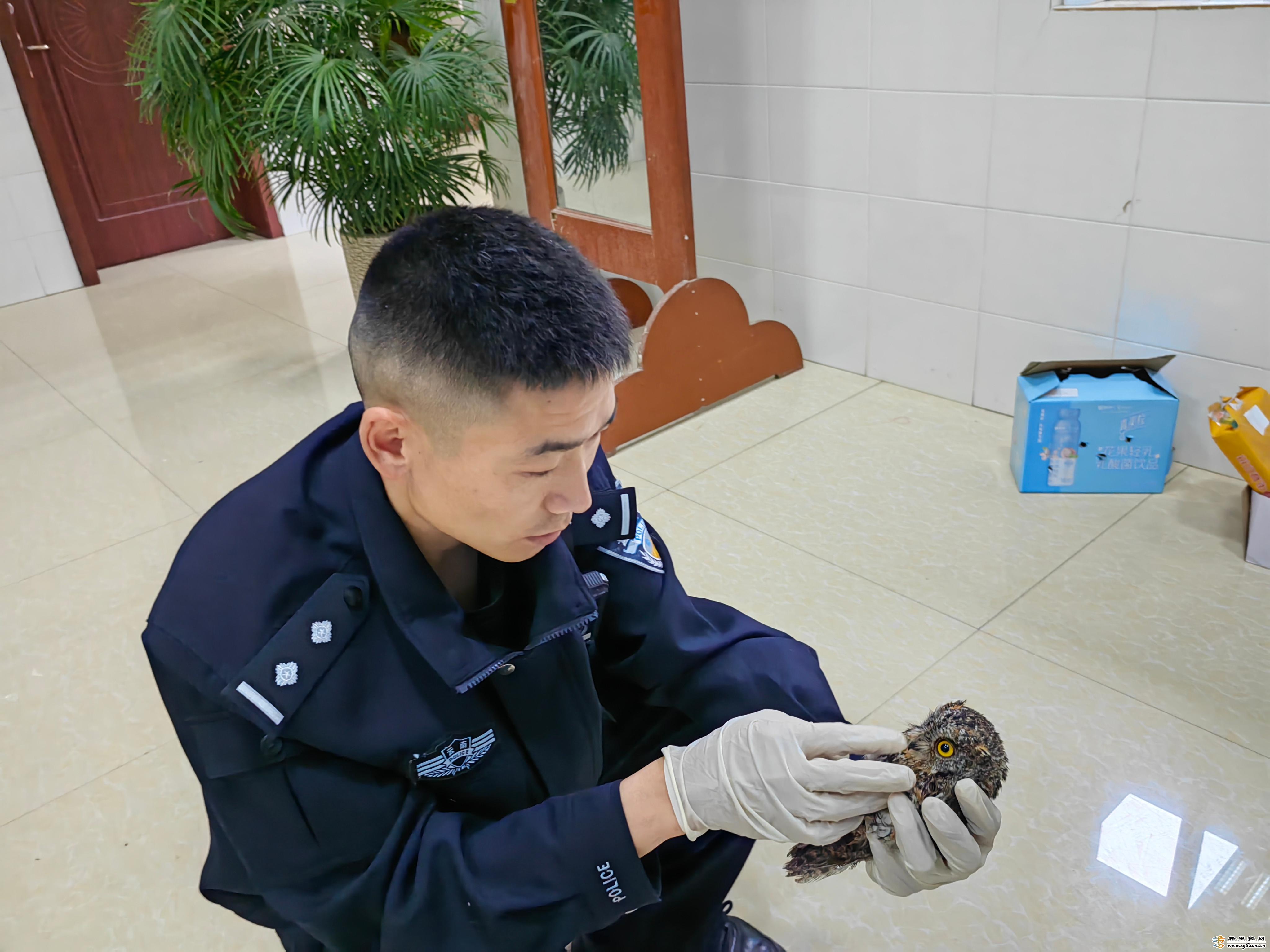 經民警仔細查看並谘詢相關(guan) 林業(ye) 專(zhuan) 業(ye) 人員,確定這是一隻紅角鴞,屬國家二級野生保護動物,因部分羽毛是濕的,故無法飛行。當晚,民警待其羽毛幹透後再次進行了仔細檢查,未發現體(ti) 表傷(shang) ,具備放生條件,於(yu) 是民警將該紅角鴞帶至野外進行了放生。