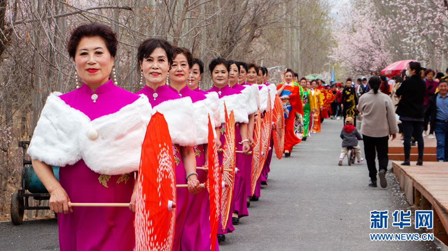 以“相約天上黃河·遇見杏花朵朵”為(wei) 主題的第七屆杏花文化藝術周4月4日在青海省海東(dong) 市化隆回族自治縣群科新區啟動。
