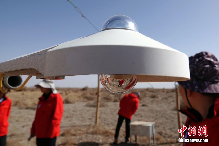 圖為(wei) 看上去貌似燈泡的科研設備,其實是觀測站用於(yu) 研究地氣相互作用的短波輻射通量的觀測探頭。中新社記者 孫自法 攝