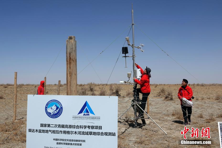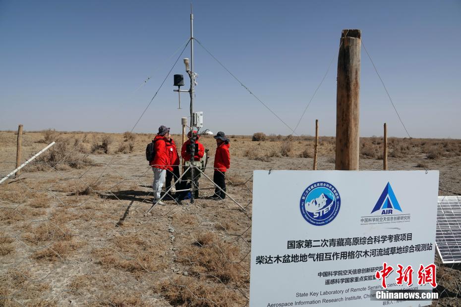 4月9日,中國第二次青藏高原綜合科學考察(第二次青藏科考)“西風-季風作用區非均勻下墊麵地氣相互作用機載通量觀測”科考分隊、中國科學院空天信息創新研究院(中科院空天院)科研團隊組成的先遣隊員一行,來到位於(yu) 青海格爾木的第二次青藏科考項目“西風-季風協同作用及其影響”的柴達木盆地地氣相互作用格爾木河流域草地綜合觀測站,進行數據讀取、設備維護等工作。