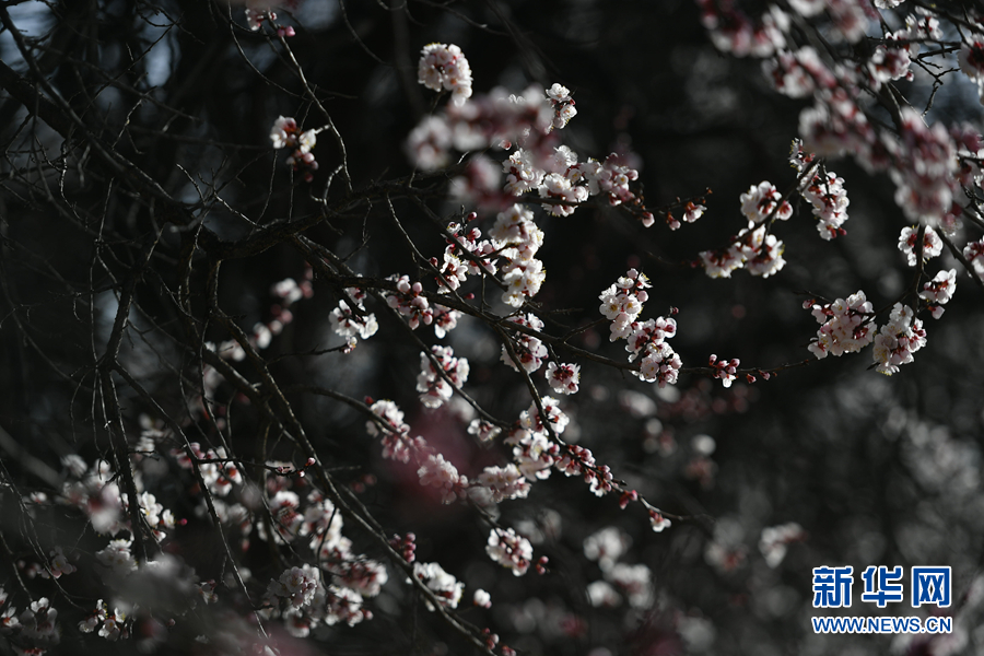 黃河岸畔的梨花迎春綻放。新華網 卡婭梅朵 攝