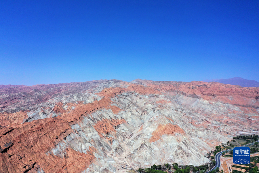 這是4月17日拍攝的青海省海南藏族自治州貴德縣境內(nei) 的丹霞地貌(無人機照片)。新華社 趙玉和 攝