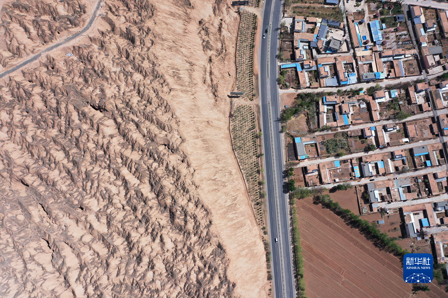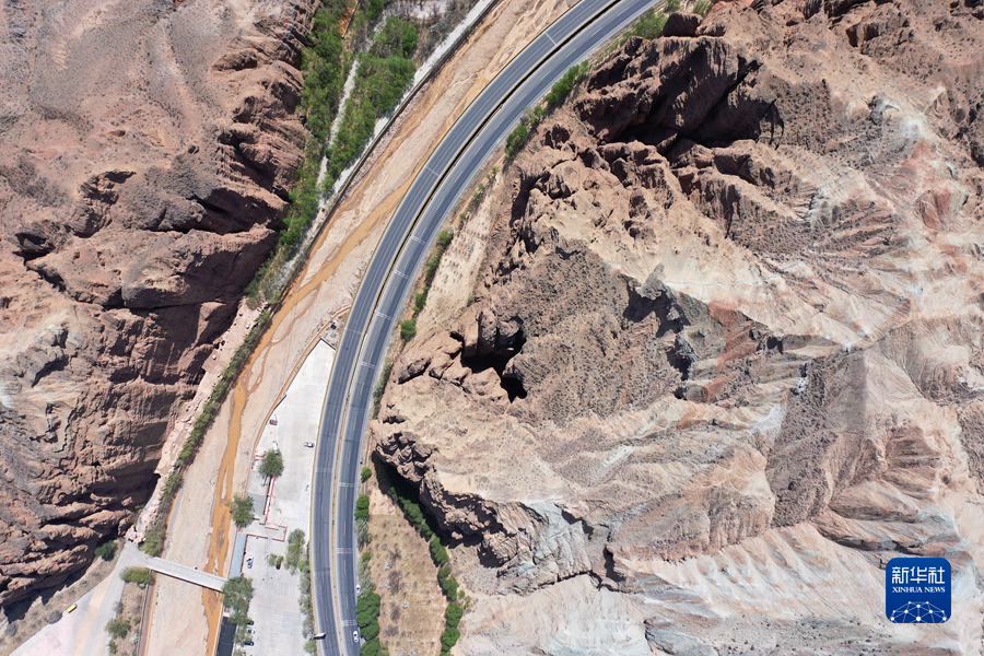 這是4月17日拍攝的青海省海南藏族自治州貴德縣境內(nei) 的丹霞地貌(無人機照片)。新華社 耿輝凰 攝