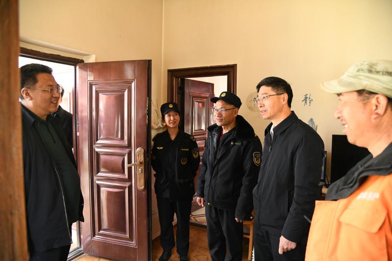 在德吉林寺檢查站,羅朝峰與(yu) 執勤人員親(qin) 切交談,詳細了解每天進山人數、造冊(ce) 登記、流動人員管理等情況。