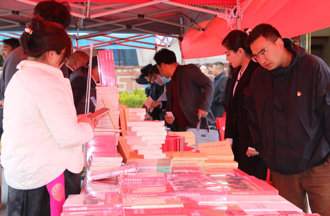 近日,記者在重點出版物展示展銷暨惠民書(shu) 市活動現場看到,迪慶州各大書(shu) 店在香格裏拉大劇院廣場中央擺放著大量習(xi) 近平新時代中國特色社會(hui) 主義(yi) 思想讀物,吸引著市民前來翻閱購買(mai) 。