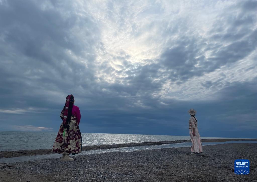 兩(liang) 位藏族姑娘在海北州海晏縣的青海湖畔。新華社記者 李琳海 攝