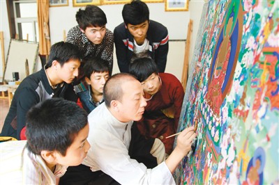 近年來,熱貢唐卡傳(chuan) 承保護工作不斷發展完善,已形成村落、家庭、傳(chuan) 習(xi) 中心、高校多渠道傳(chuan) 承的格局。藝術的生命不僅(jin) 僅(jin) 在於(yu) 傳(chuan) 承,更要在傳(chuan) 承中發展。如今,熱貢唐卡已走出雪域高原,古老的唐卡藝術正在煥發新的蓬勃生機。