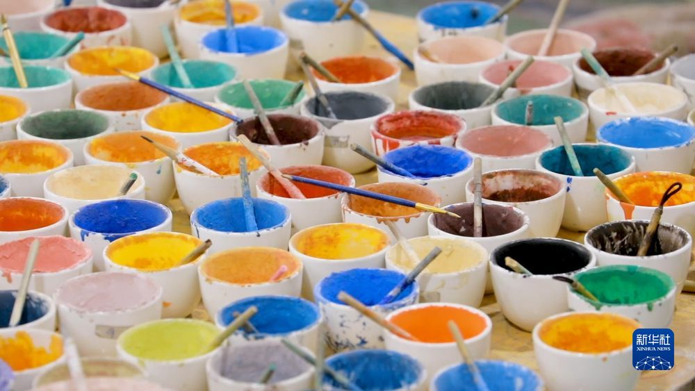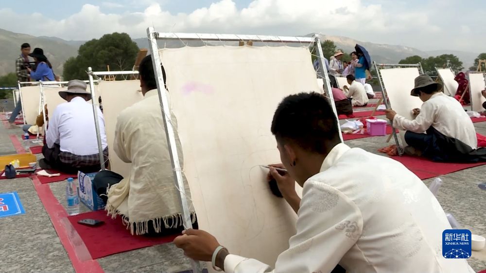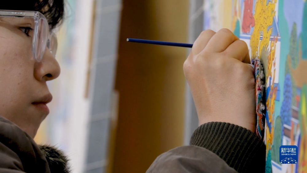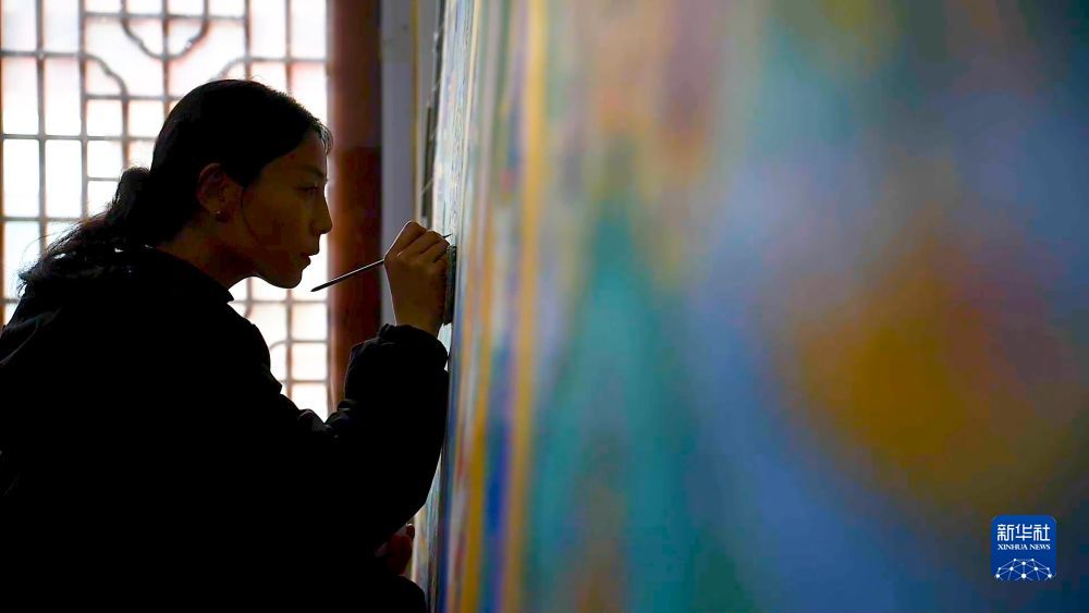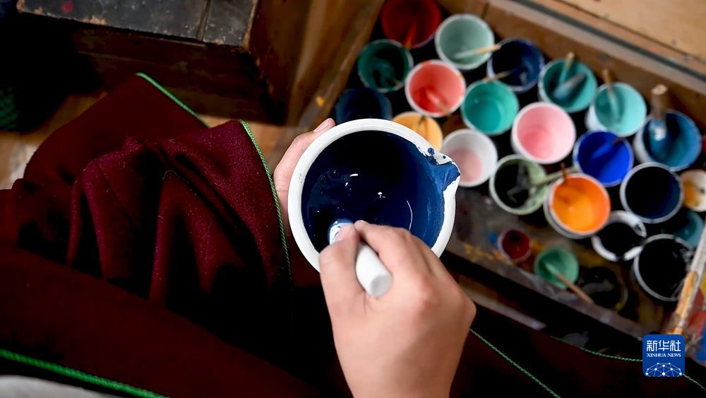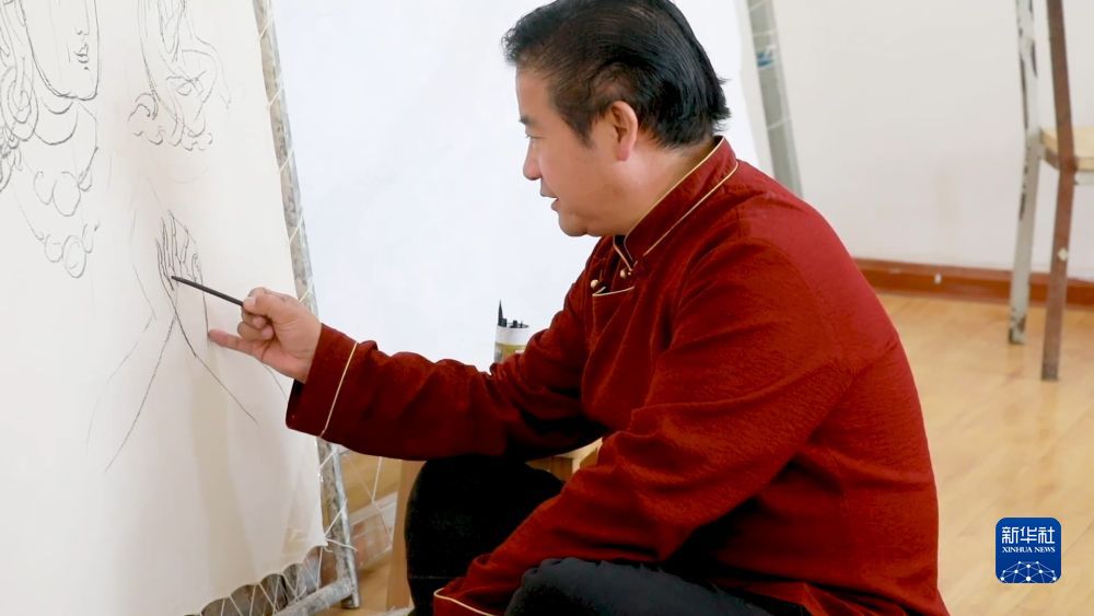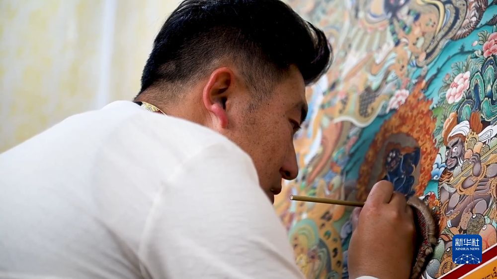 打磨布麵、研製畫料、著色、暈染、勾線……唐卡創作的每一個(ge) 環節都考驗著畫師的專(zhuan) 注力和耐力。