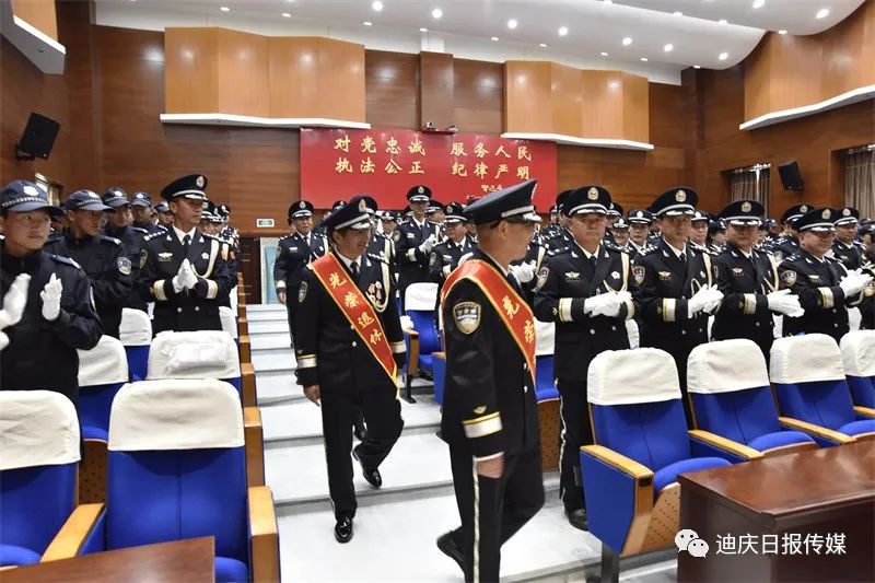 迪慶州公安局會(hui) 議室內(nei) ,全體(ti) 民警身著警禮服已等候多時。