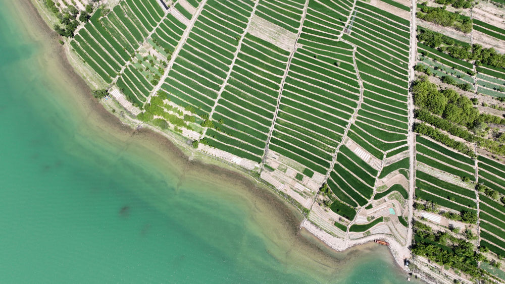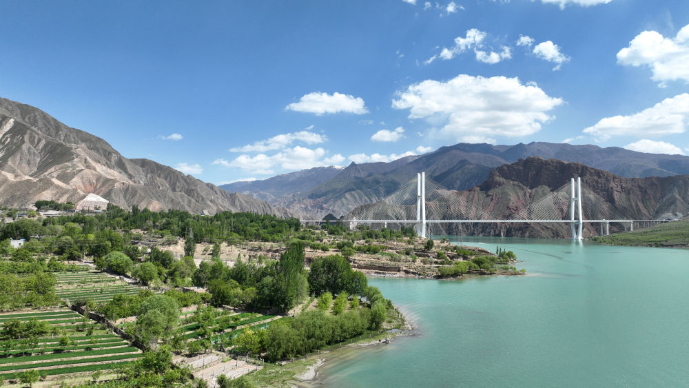 初夏時節,位於(yu) 青海省黃南藏族自治州尖紮縣境內(nei) 的黃河上遊尖紮段風光旖旎,綠意盎然,河水、群山、村落與(yu) 麥田共同組成一幅美妙的生態畫卷。