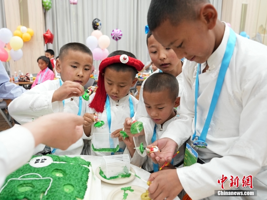 圖為(wei) 藏族孩子們(men) 分享蛋糕。中新社記者 崔楠 攝