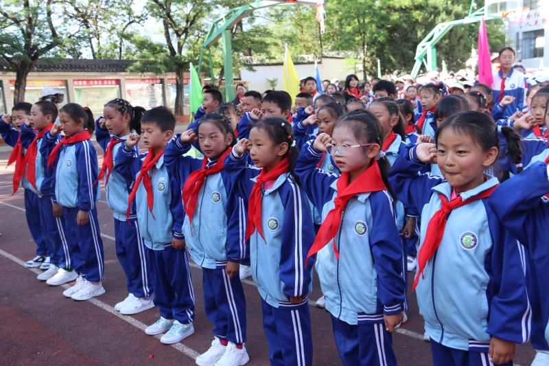上午8點30分,活動正式開始,升國旗、唱國歌、行隊禮,孩子們(men) 激動的心情溢於(yu) 言表。在新隊員入隊儀(yi) 式上,共有138名學生加入光榮的中國少年先鋒隊組織,老隊員們(men) 為(wei) 他們(men) 佩戴紅領巾,鮮豔的紅領巾在新隊員的胸前飄揚,也在燦爛的朝陽下熠熠閃光。隨後,該校對獲得“2022—2023年度“優(you) 秀少先隊員”“優(you) 秀班幹部”“紅領巾一星獎章榮譽”的同學進行了表彰。最後,學校舞蹈社團的孩子們(men) 為(wei) 大家帶來精彩的歌舞表演,把整個(ge) 活動推向高潮。 (張燕 攝影報道)