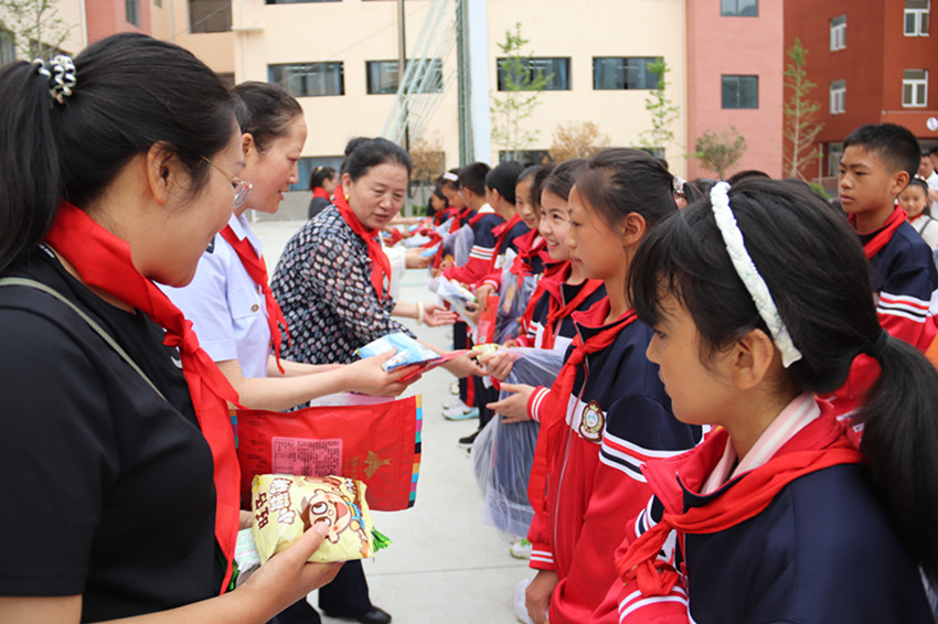 慰問組一行為(wei) 50名困境兒(er) 童送上節日的祝福和禮物,勉勵他們(men) 要感恩父母、老師的教育陪伴,珍惜今天的幸福生活,從(cong) 小樹立遠大理想,好好學習(xi) 、天天向上,長大後為(wei) 建設祖國和家鄉(xiang) 貢獻力量。