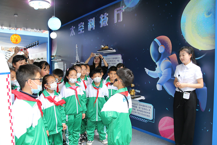 在軍工科技廳的運20模型前,“小軍迷”熊子睿熱情地向同學們介紹起這架飛機的構造、功能和優點。[詳細]