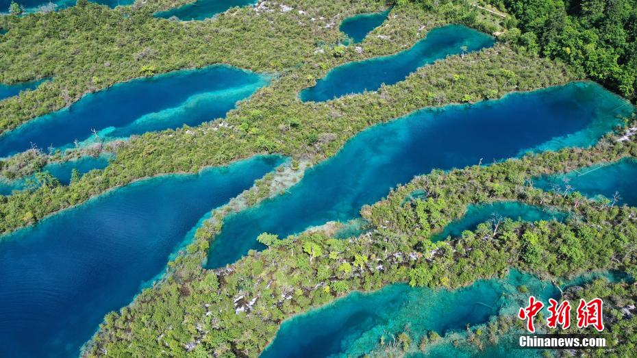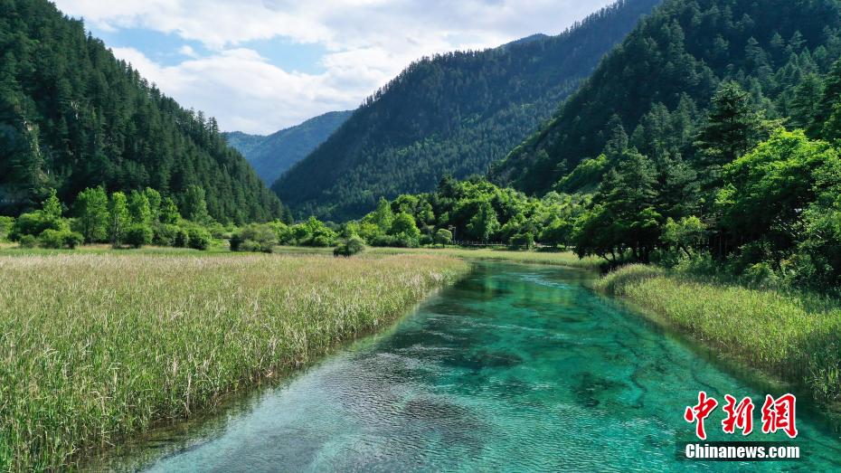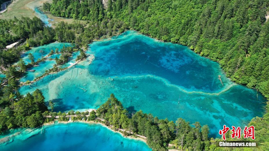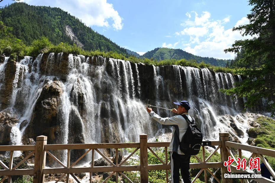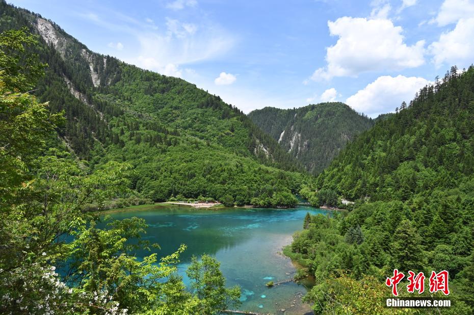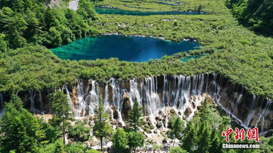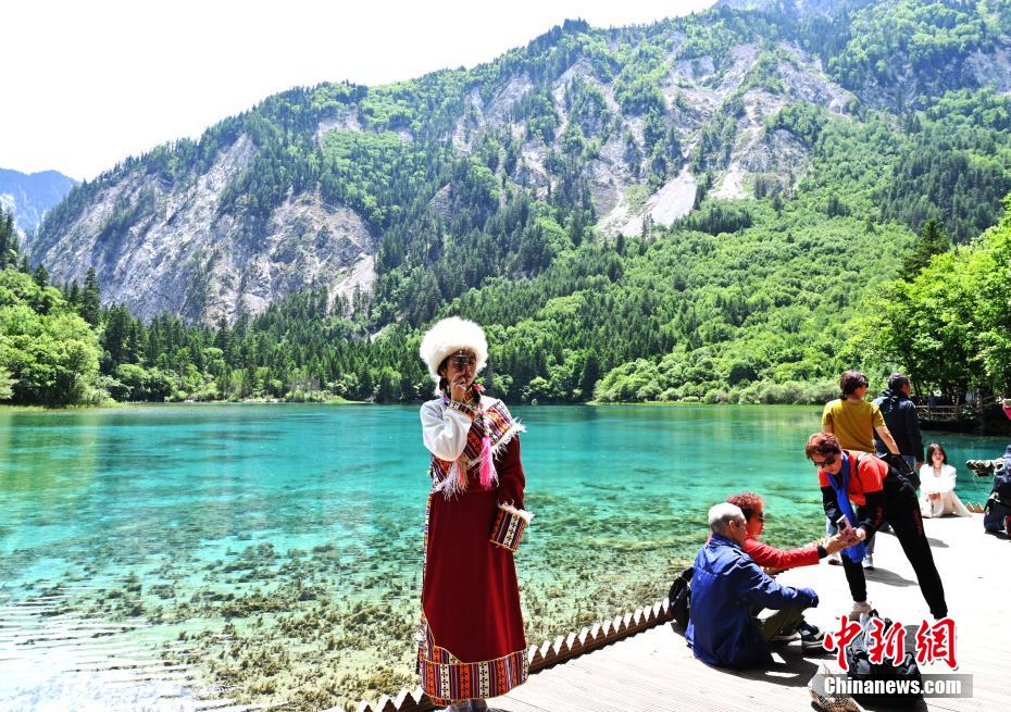 6月8日,初夏時節,世界自然遺產(chan) 地九寨溝景區風景如畫,吸引眾(zhong) 多遊客觀光遊玩。安源 攝