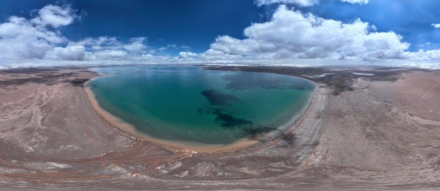 這是6月17日拍攝的可可西裏卓乃湖(無人機全景照片)。新華社記者 張宏祥 攝