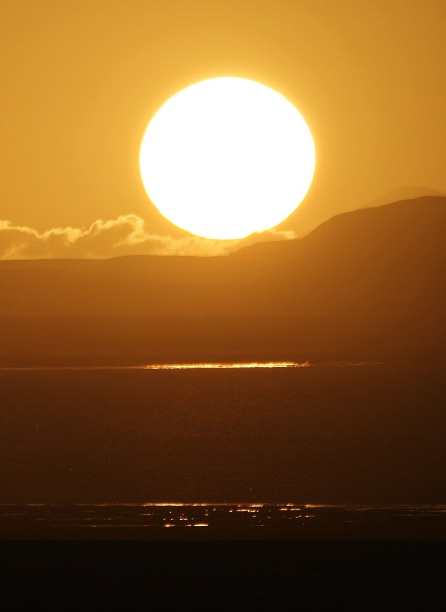 6月17日在可可西裏卓乃湖拍攝的落日。新華社記者 薛玉斌 攝