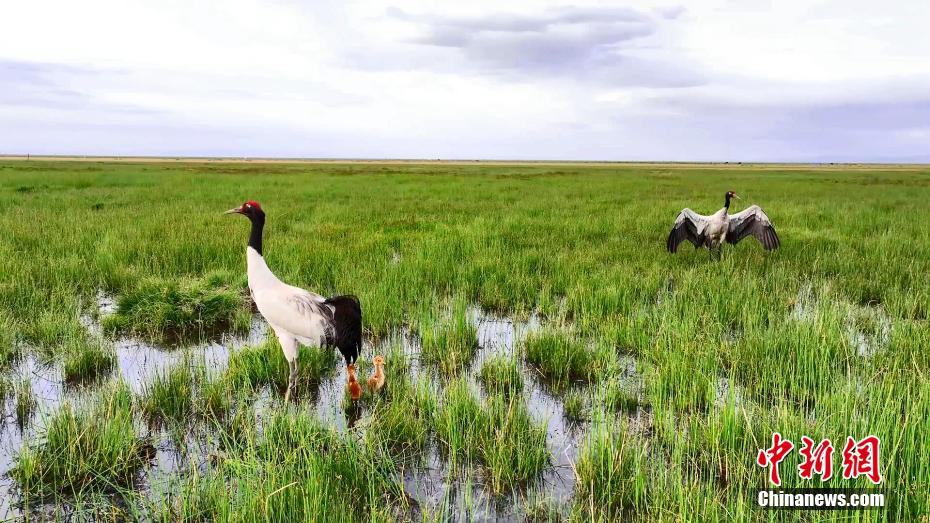 圖為(wei) 巴隆草原上黑頸鶴一家。海西州融媒體(ti) 中心供圖