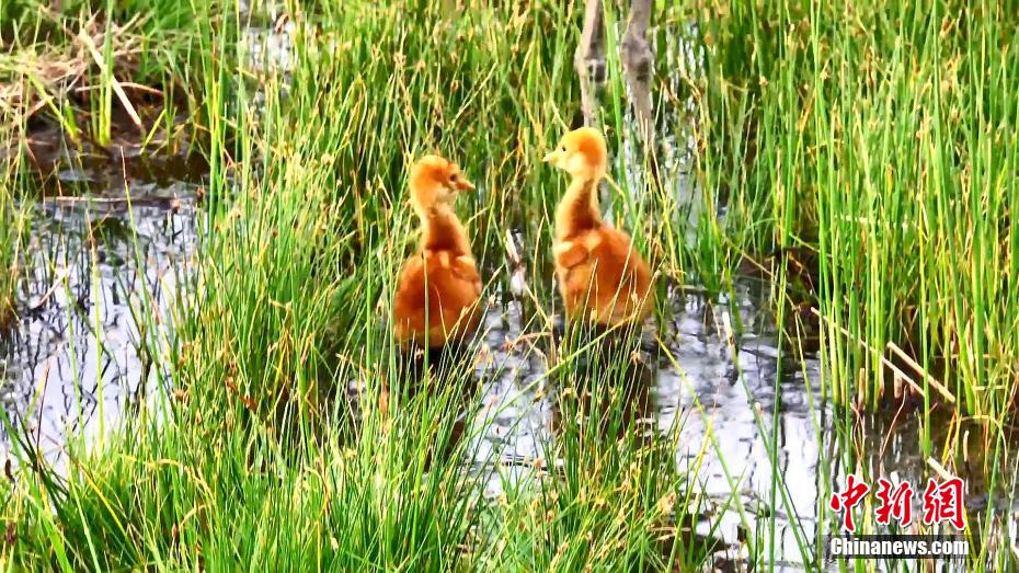 圖為(wei) 巴隆草原上破殼不久的兩(liang) 隻小黑頸鶴。海西州融媒體(ti) 中心供圖