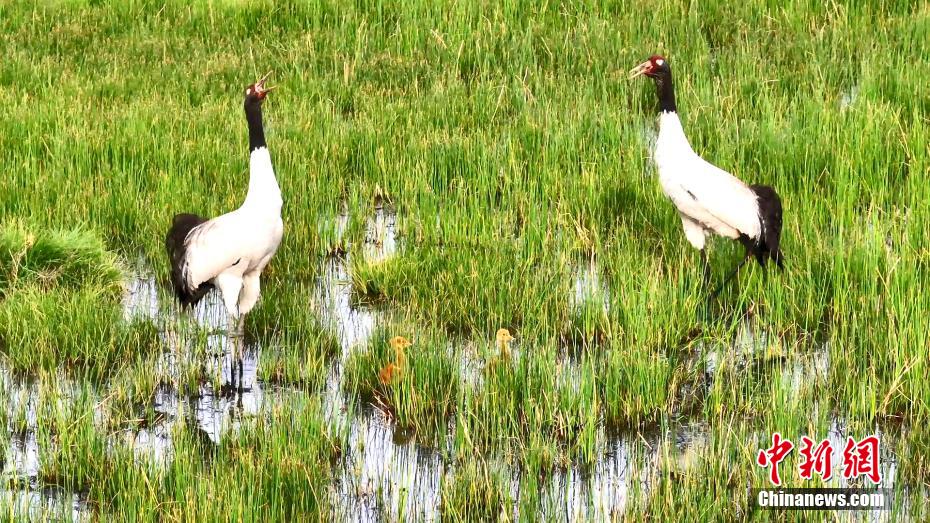 高原黑頸鶴進入“育兒季” “一家四口”同框顯溫馨