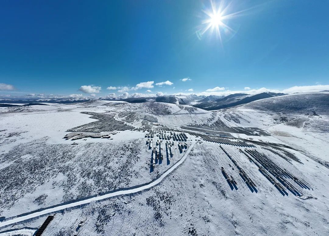 同時,項目工程量大,場址麵積約16平方公裏,由200多萬(wan) 塊光伏組件、5000多台逆變器、300多台箱式變電站組成。針對係列痛點,為(wei) 趕在今夏用電高峰前投運,建設者們(men) 創新工程技術手段,先後攻克10餘(yu) 項技術難題,創造了大型光伏項目在高寒高海拔地區冬季連續大規模施工的先例。