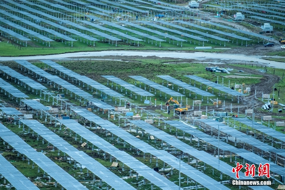 6月23日,柯拉光伏電站場內(nei) 參建人員正加快項目工程相關(guan) 建設。