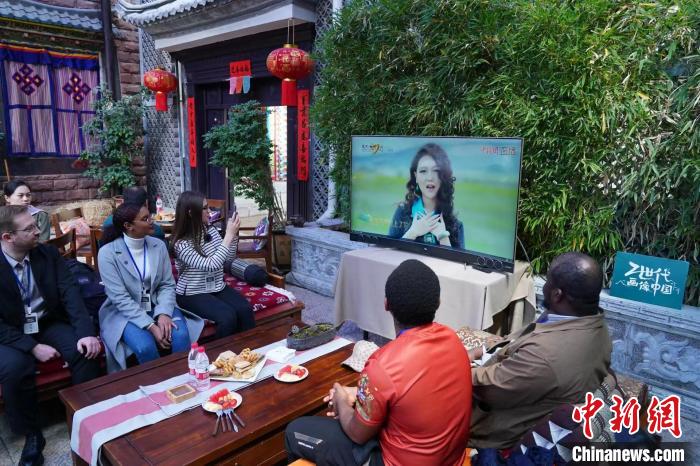 圖為(wei) 參加“Z世代”畫像中國網絡互動活動的海外青年們(men) 觀看“民歌大觀”。主辦方供圖