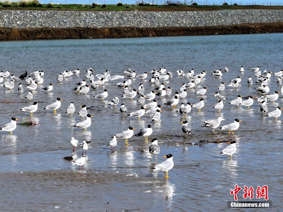 圖為(wei) 青海湖入湖河流布哈河漁鷗雲(yun) 集。包雷 攝